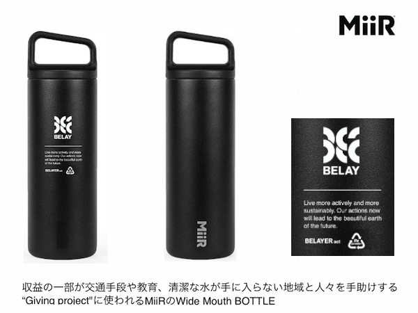保温・保冷力に優れたダブルウォール真空断熱材で作られたBELAY X MiiR Wide Mouth Bottle1名(カラー/ブラック 16oz/473ml )