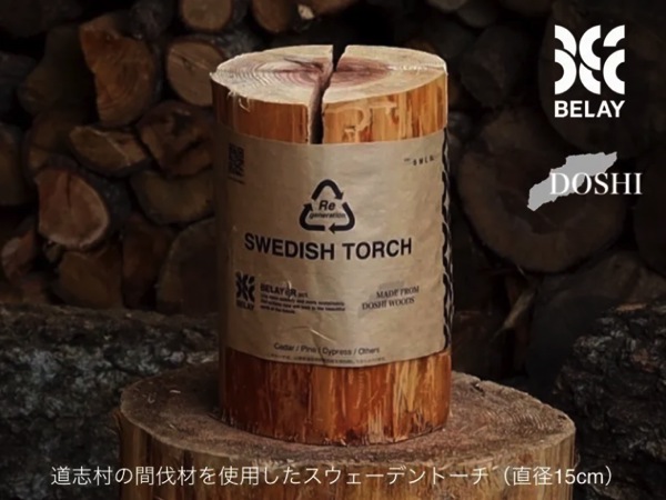 道志村「養老の森」での森林整備の間伐材を使用したスウェーデントーチ1名(サイズ/ 直径約15cm 高さ約25cm)
