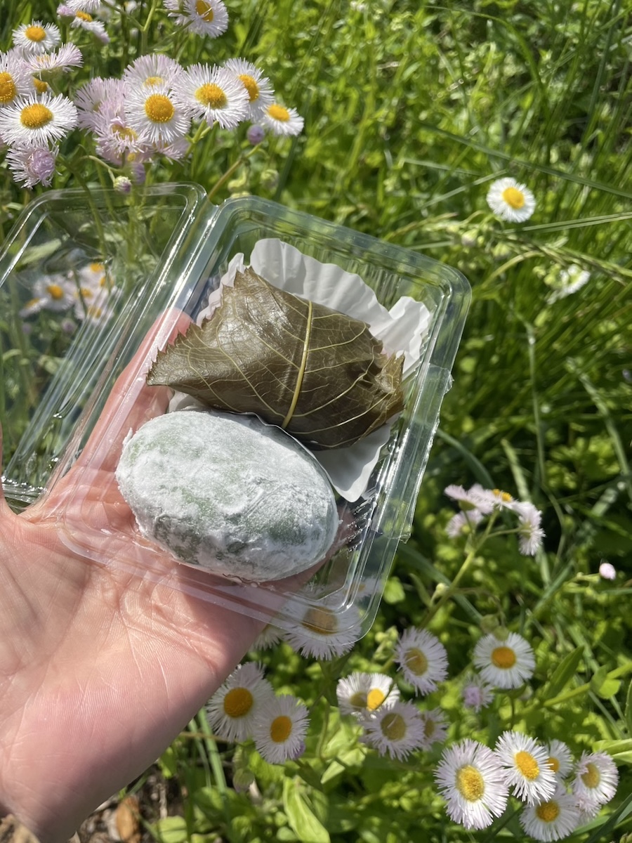 地元自慢の草餅と桜餅が、香りよくやわらかく美味しかった。 気持ち良い外でのおやつは最高です。