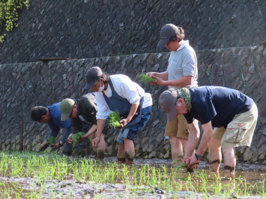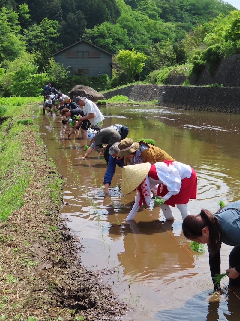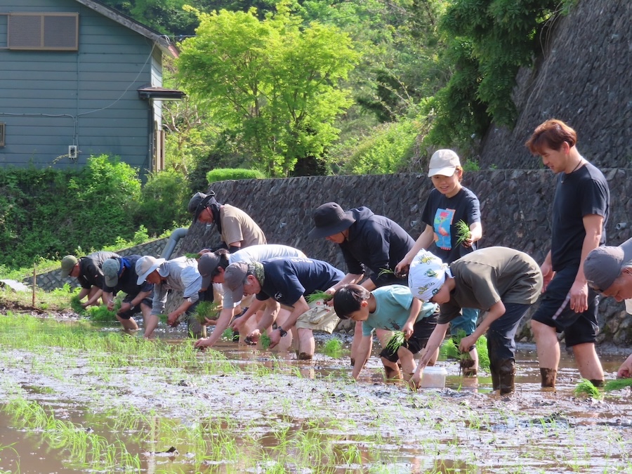 山梨県道志村にて5月13日(火)、養老の森「田植え」に参加してきました。横浜市の水源地である道志村で育った~養老米~は、養老孟司先生(養老の森代表理事)の名付けをお許しいただいた道志村オリジナル品種です。