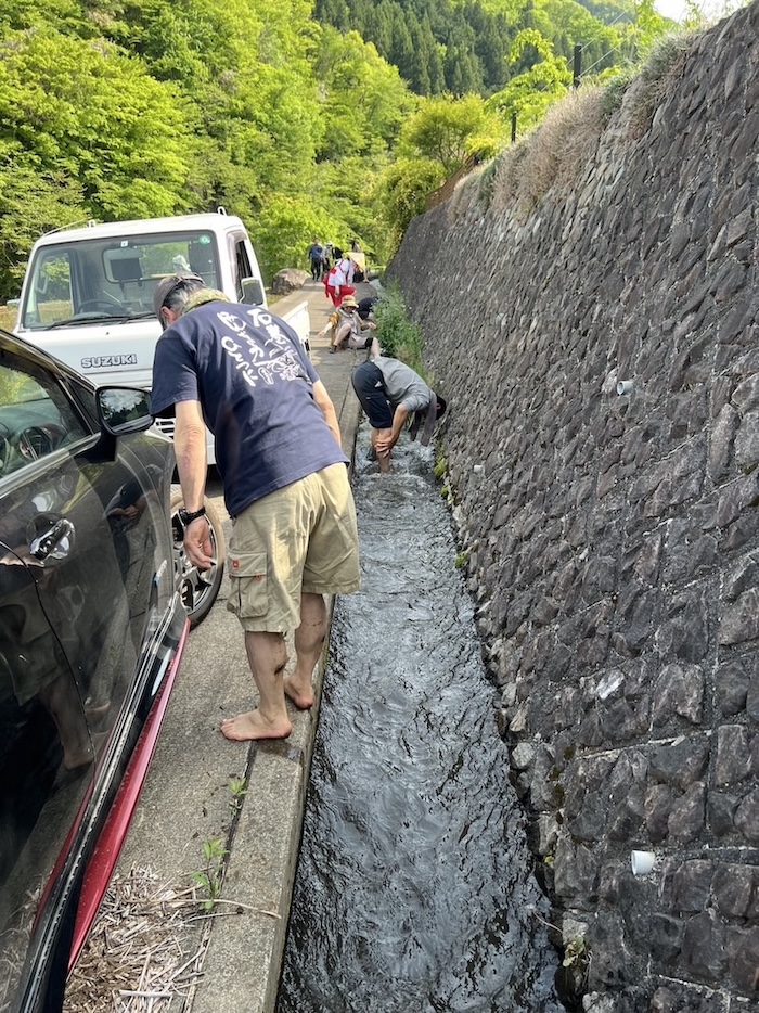 田植えが終わると横の水路で汚れを落とすのですが、これがまた気持ちいい。