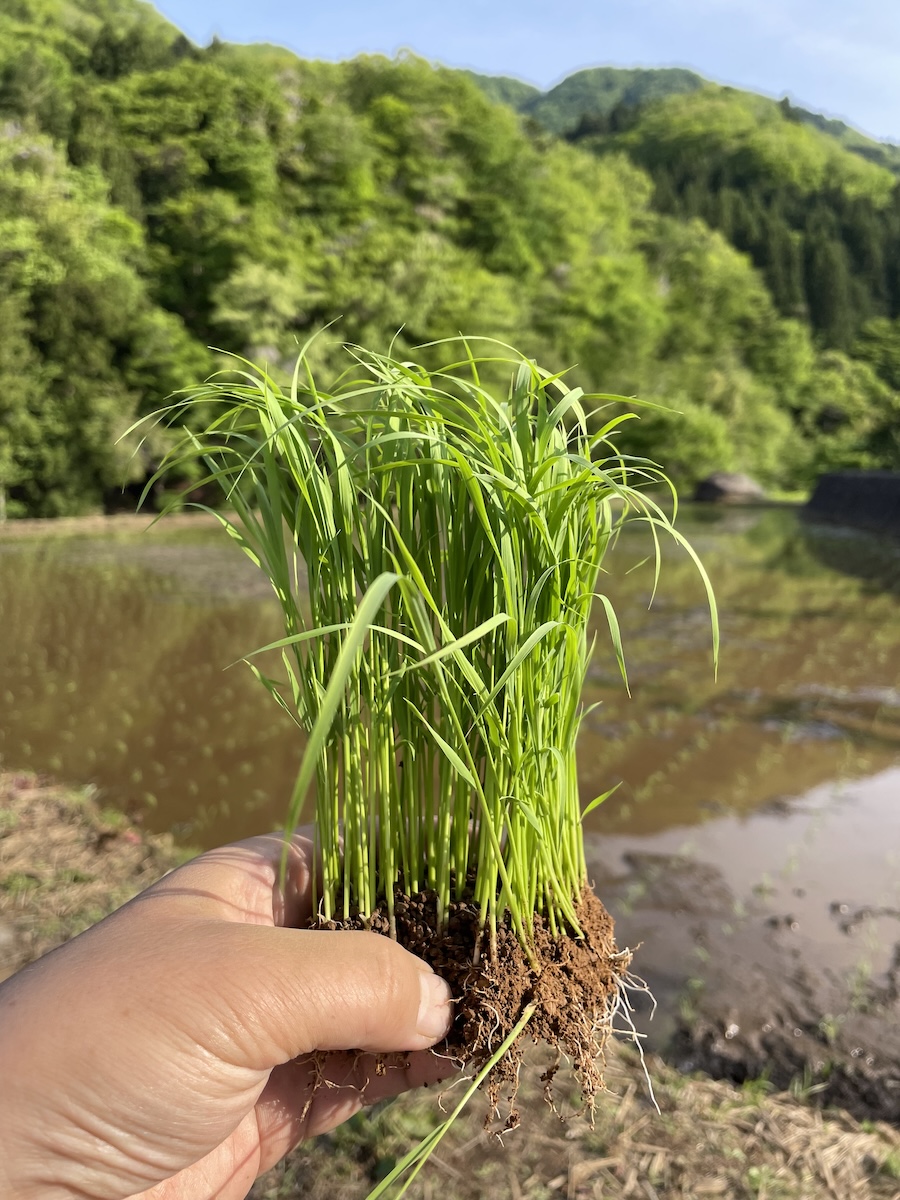 一本一本がしっかりとした新緑美しい養老米の苗です。