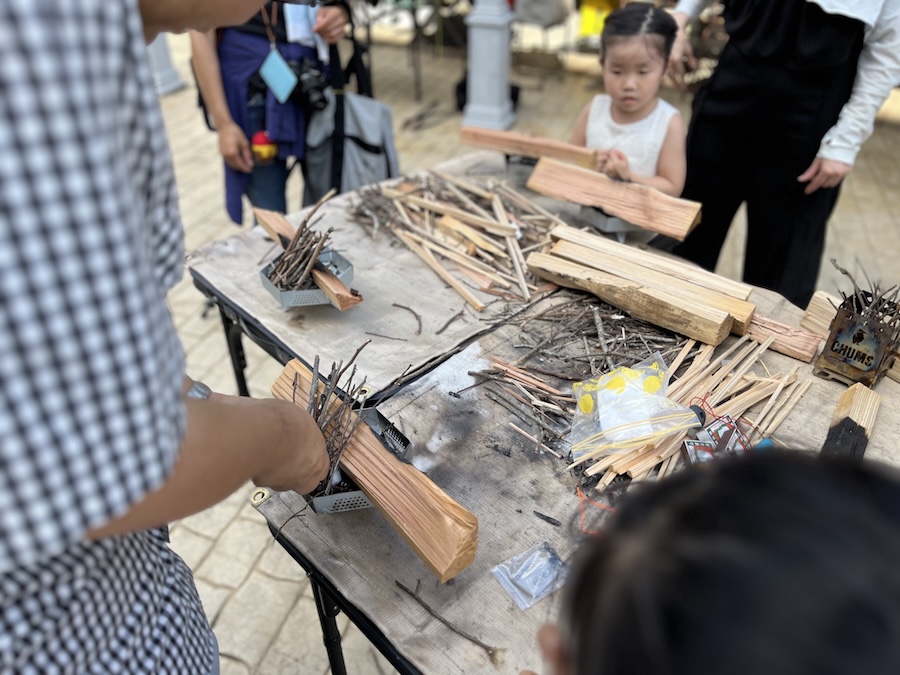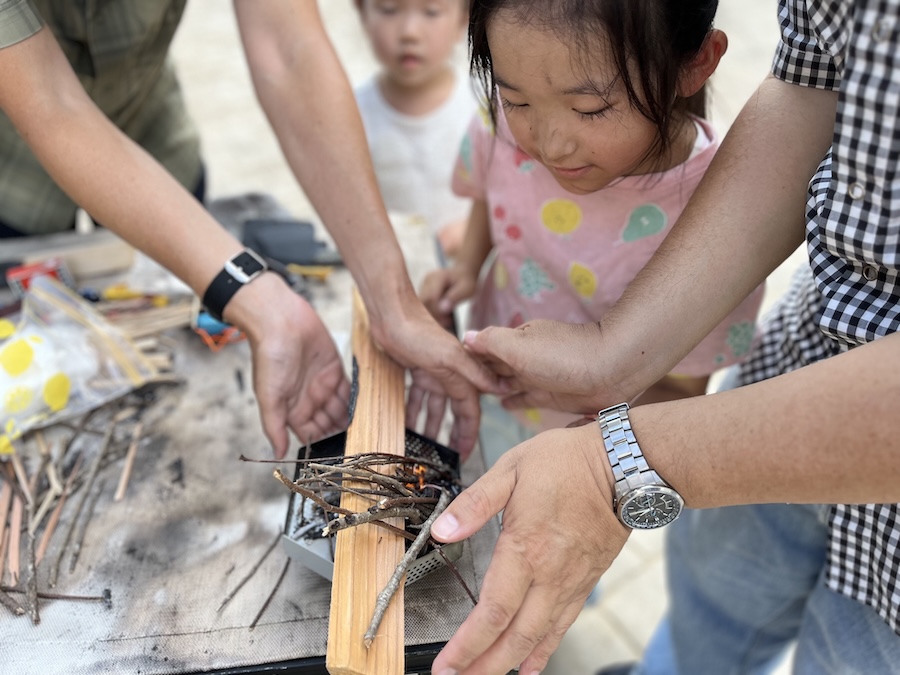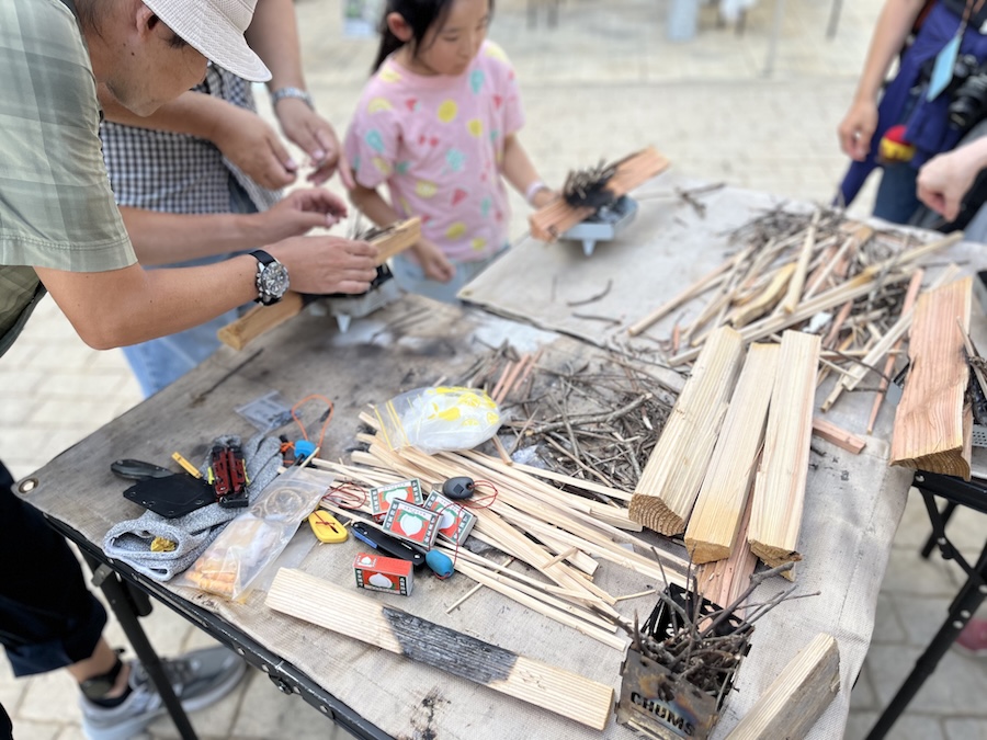 もちろん大人の方も参加いただきました。大人の方はマッチだけでなく火花で火をつけるメタルマッチにもチャレンジしました。