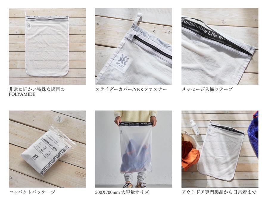 BELAYでは、マイクロプラスチックファイバーの海洋流出を抑制する洗濯ネット「WASHING NET BAG」を発売しました。