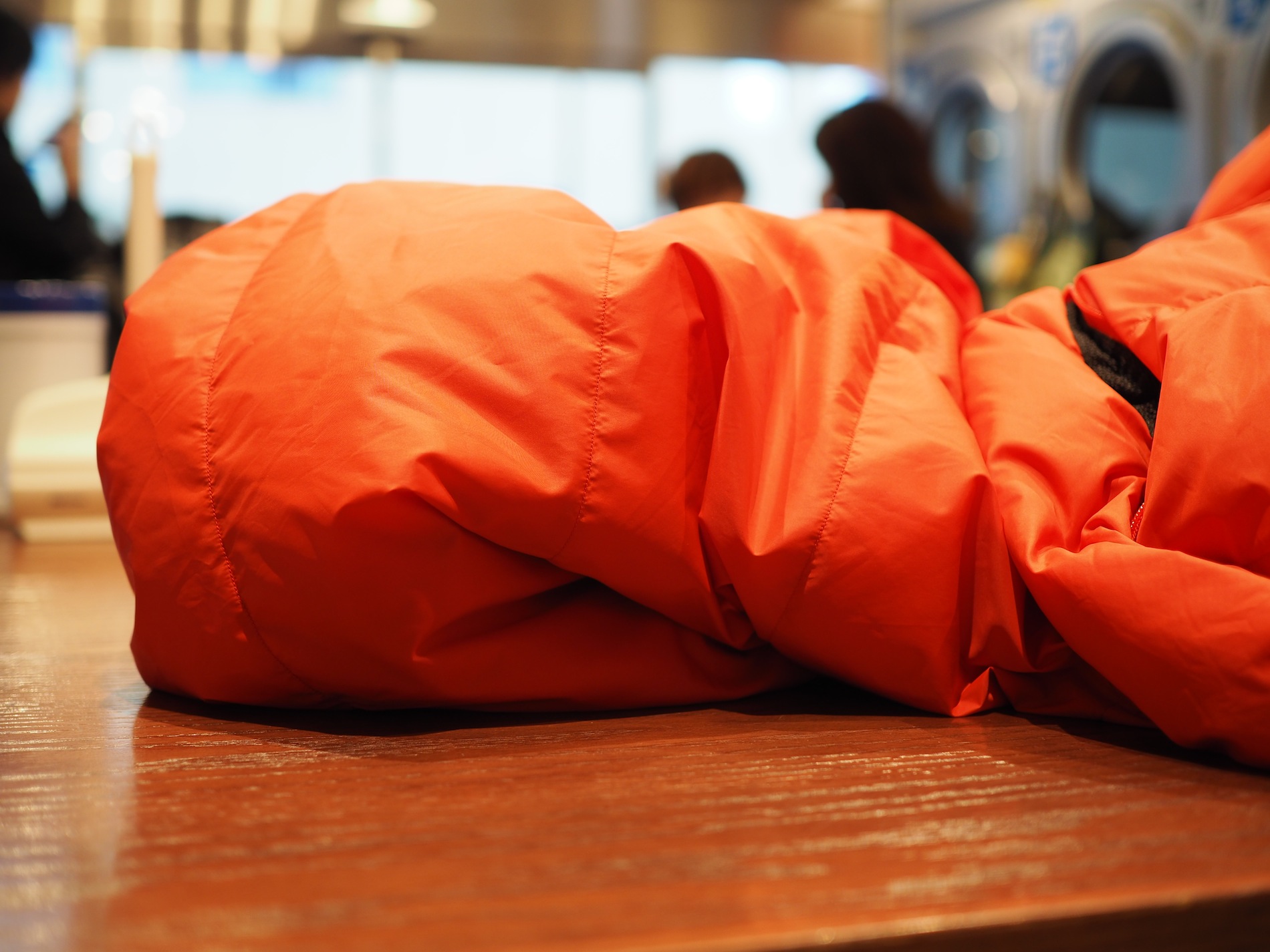 ④小銭(必須)とテニスボール3〜5個(あれば)と寝袋(必須)を持ってコインランドリーへ! (時間つぶしの術も持って)