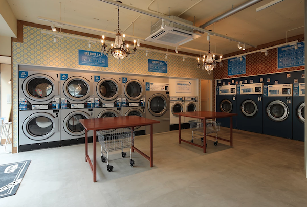 こちらのコインランドリーは、カフェも併設でお洒落でくつろげる空間です。