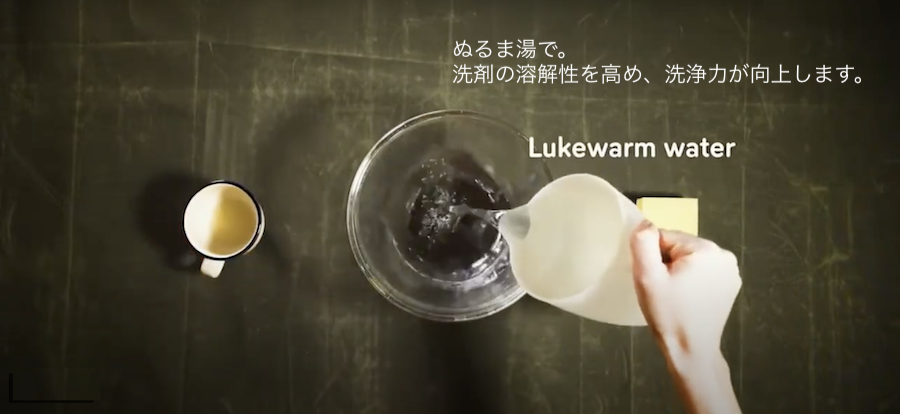 ぬるま湯は洗剤の溶解性を高め洗浄力が向上します。