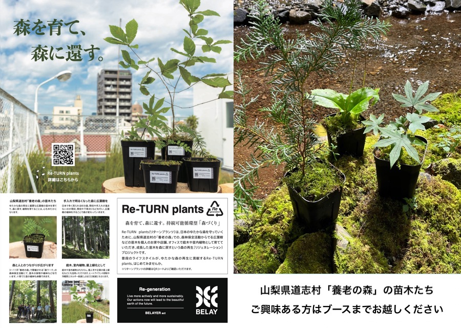Re-TURN plantsは、日本のゆたかな森を守っていくために、我々の活動の場山梨県道志村「養老の森」での森林整備活動からでる苗木を育てていただき、成長した苗木を森に戻すという再生(リジェネレーション)プロジェクトです。