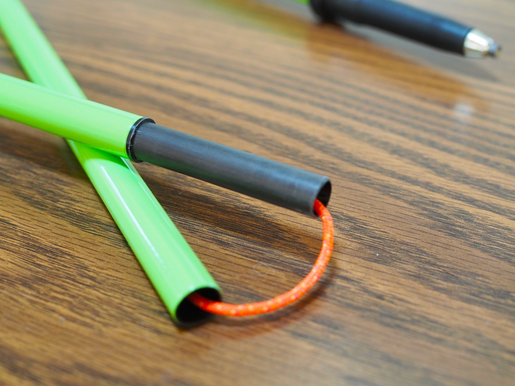 組み立てて、グリップのトップから内蔵の細引きコードを引っぱり固定するというシンプルな構造です。長さの調節などはできませんが、その分、抜群の操作性と軽量コンパクト性を実現します。