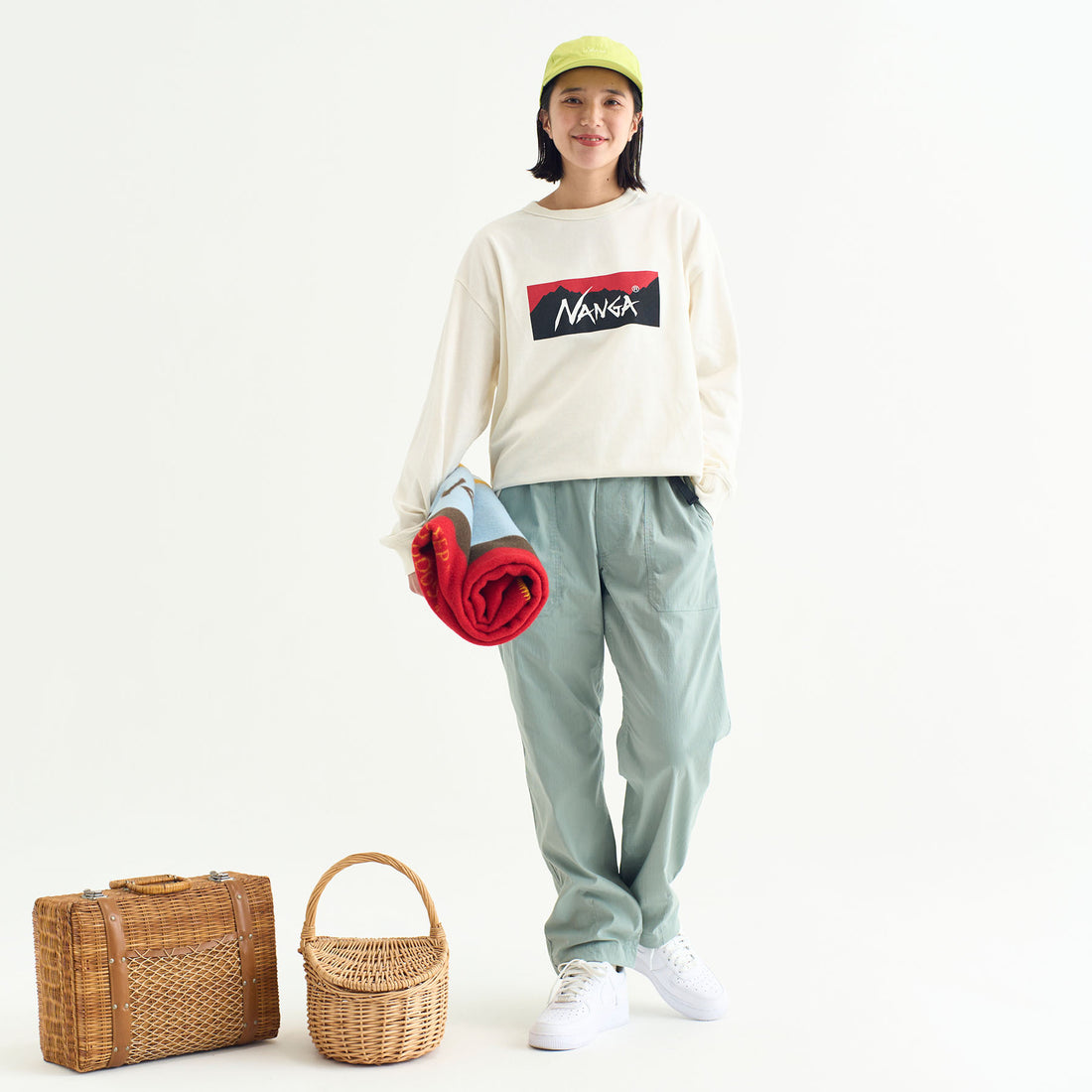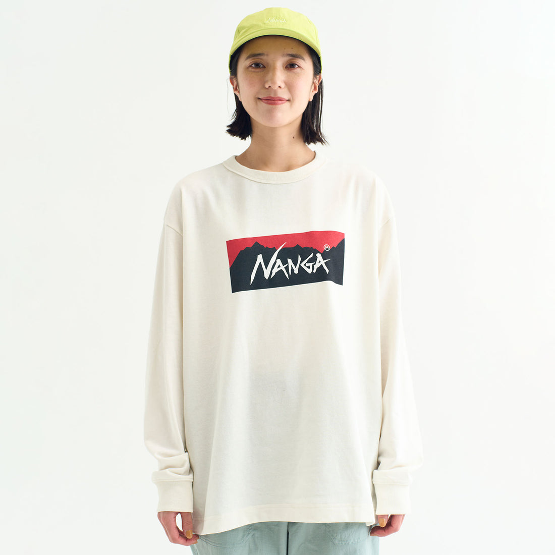 ナンガのBOXロゴをプリントした定番ロングスリーブTシャツ。ゆったりとしたシルエット、シワになりにくい素材で日常生活でも気兼ねなく着用していただけます。定番アイテムだからこそ、シンプルでどんなコーディネートにも相性の良いデザインです。