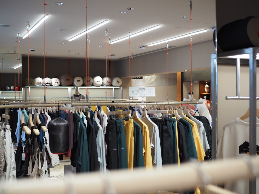 ウェアから寝袋そして布団まで、ナンガ的ライフスタイルを体現できるアイテムが並ぶ。