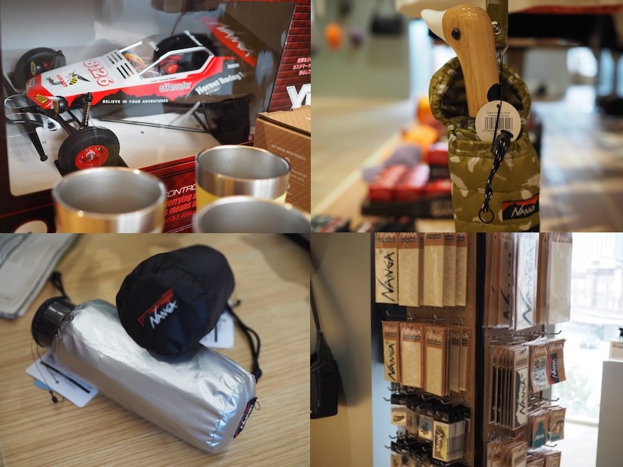 NANGA×‛47、NANGA×Clefなど人気のキャップ類、NANGA×TAMIYA レーシングバギー 、NANGA×Sleep-Friendly コンパクト ダック アンブレラなど多種多様なコラボアイテムが並ぶ。