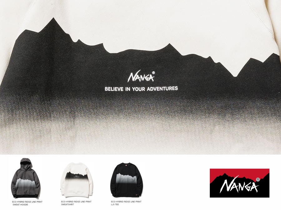 Home > FEATURES > ナンガパルバットの稜線が繋がるデザイン、環境に配慮したスウェット発売。【NANGA】