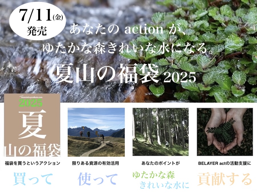 Home > FEATURES > 【夏山の福袋2025 7/11発売】あなたのactionが、ゆたかな森きれいな水になるアウトドアブランド福袋です。