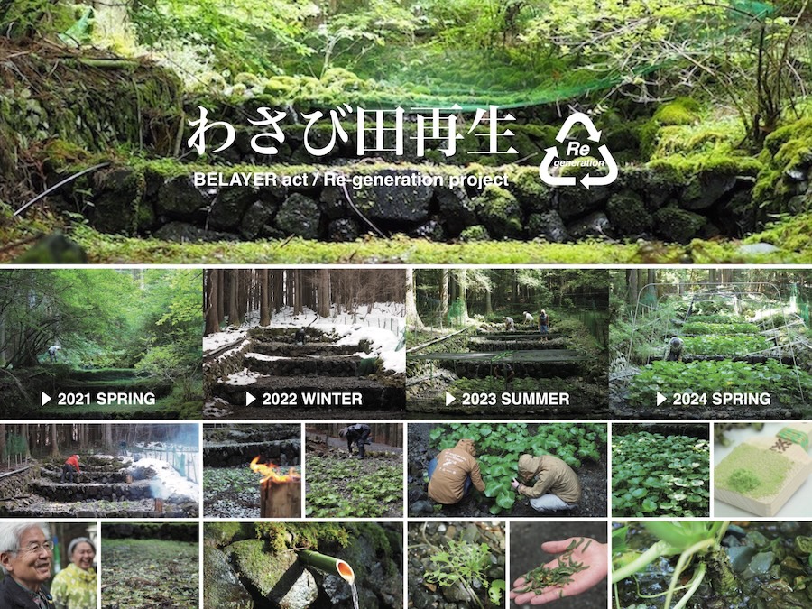BELAY Inc.では、50年間使われていなかった「わさび田」を再生するプロジェクトを行っています。森の整備が水をきれいにする。きれいな水の象徴でもある「わさび田」を再生し、真に豊かな自然との共生、安心安全に暮らせる持続可能な社会の実現に向けての活動のご支援となります。