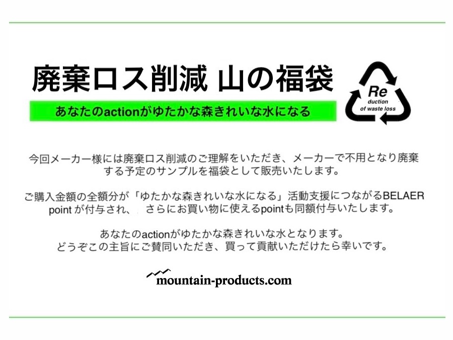 〇福袋購入する事で、ゆたかな森きれいな水になる活動の支援となるBELAYER POINTが付与されます(お客様の負担はございません)。同時にお買い物ポイントも付与されます。