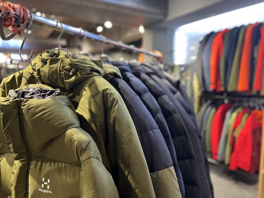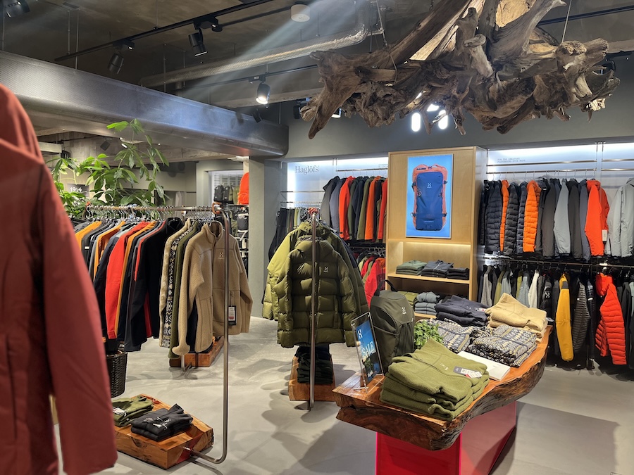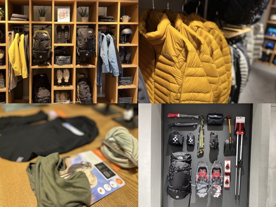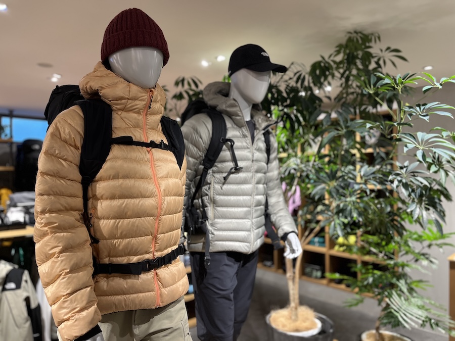インナー、ミドル、シェル、その他ギアアクセサリーなどセレクトされたラインナップがゆったりとした空間の中で選ぶことができます。