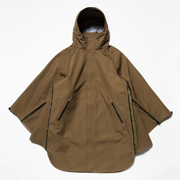 3 レイヤーの完全防水透湿素材を使用したポンチョコート。