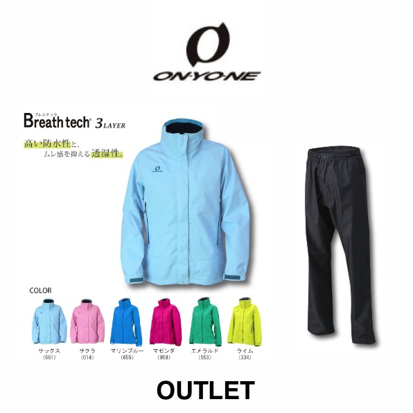 アウトレットのレディスブレステックレインジャケット &パンツです。ブレステックファブリック、フルシームシーリング仕様で防水・防風性能と透湿性能を兼ね備えたアクティブウェア上下を特別価格でご提供いたします。