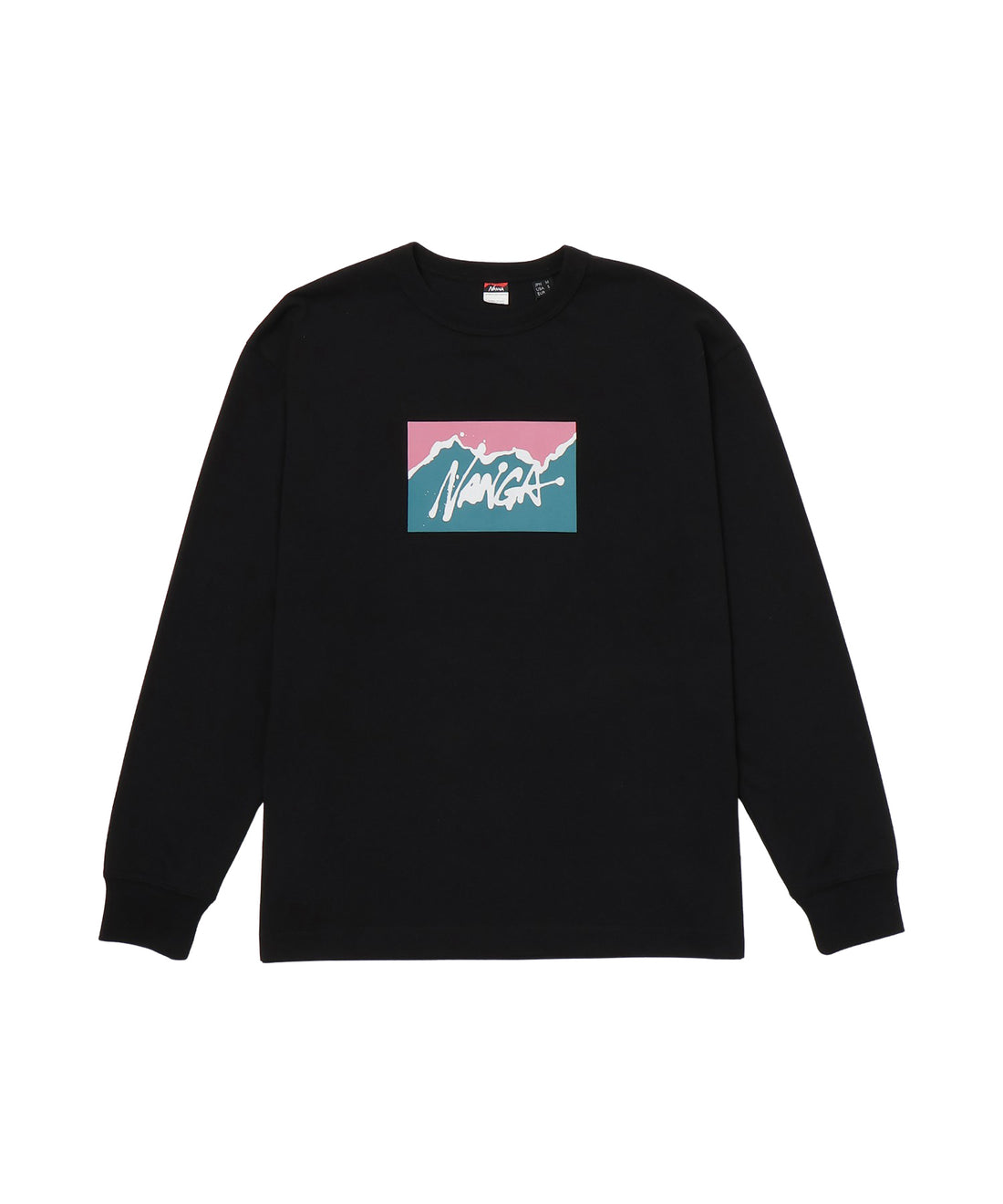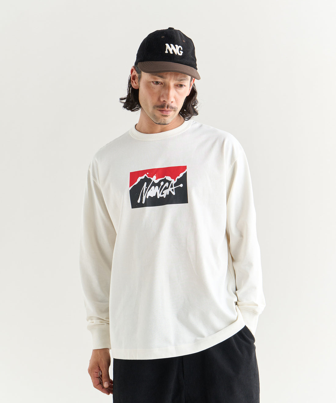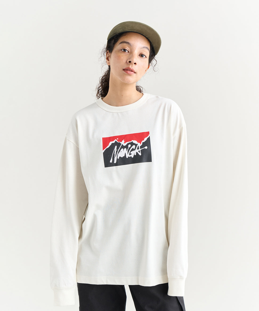 NANGAのブランドを象徴する「ナンガ ボックスロゴ」をベースに、神山隆二氏がアレンジを加えた特別なグラフィックロンT。