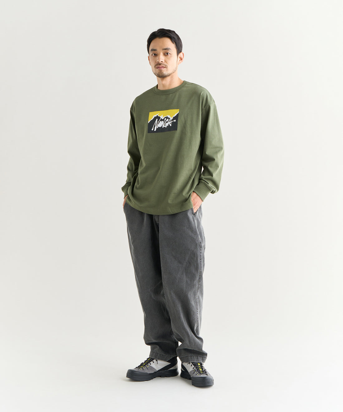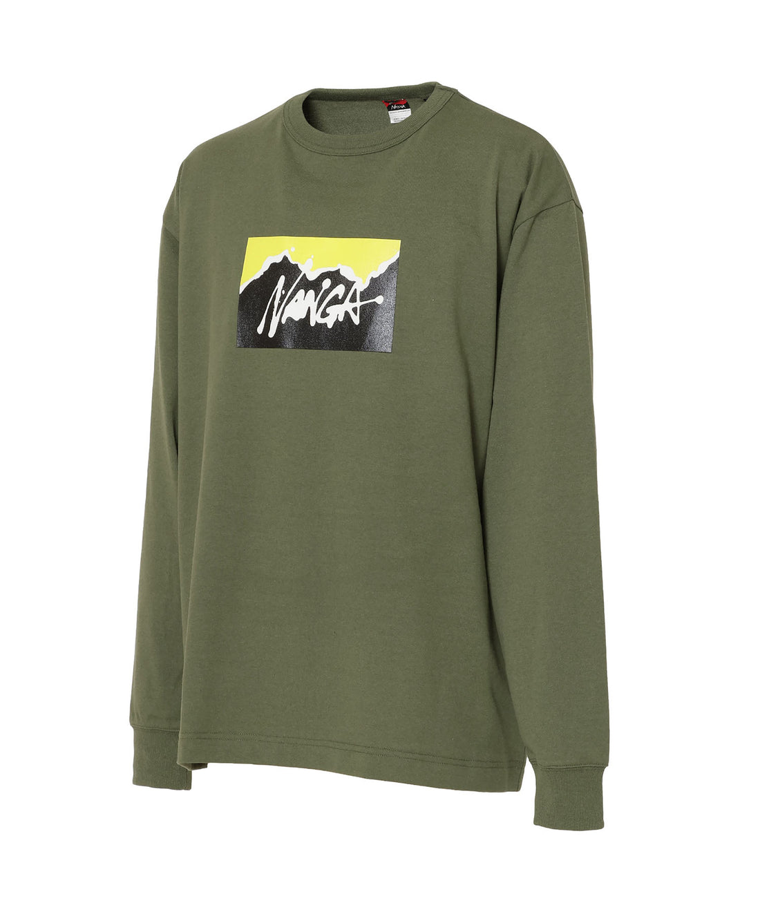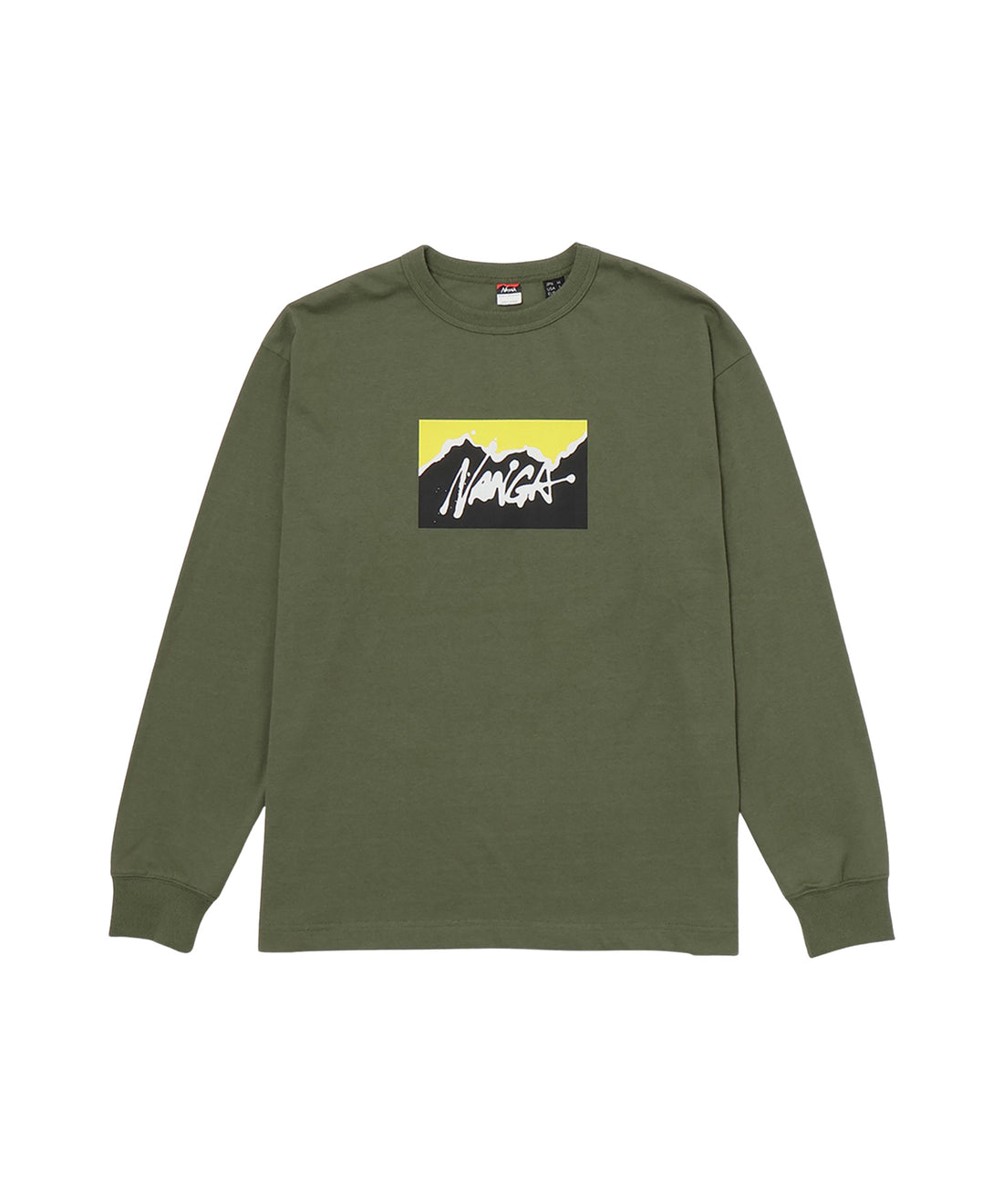 NANGAのブランドを象徴する「ナンガ ボックスロゴ」をベースに、神山隆二氏がアレンジを加えた特別なグラフィックロンT。