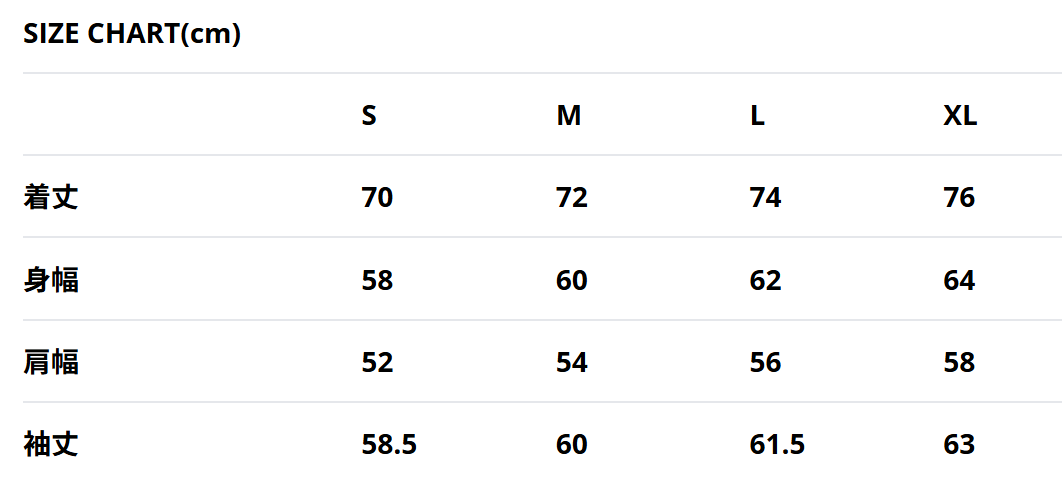 | サイズチャート | サイズチャート |