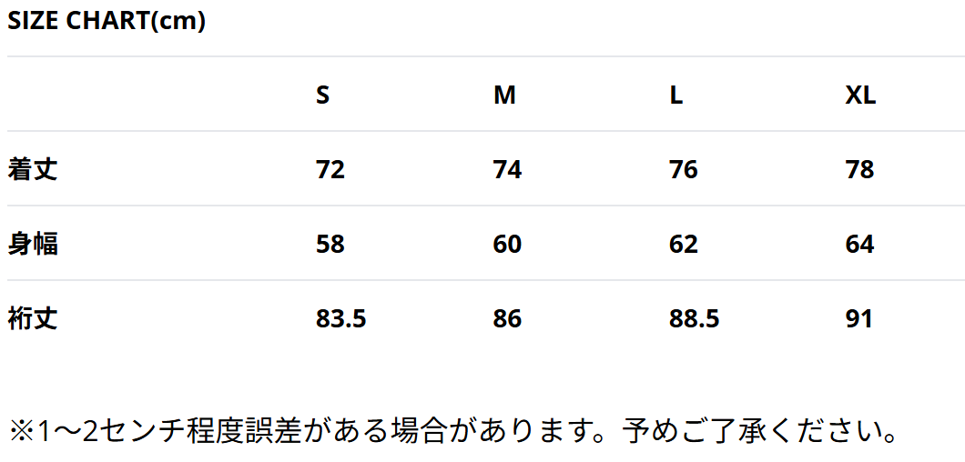 | サイズチャート | サイズチャート |