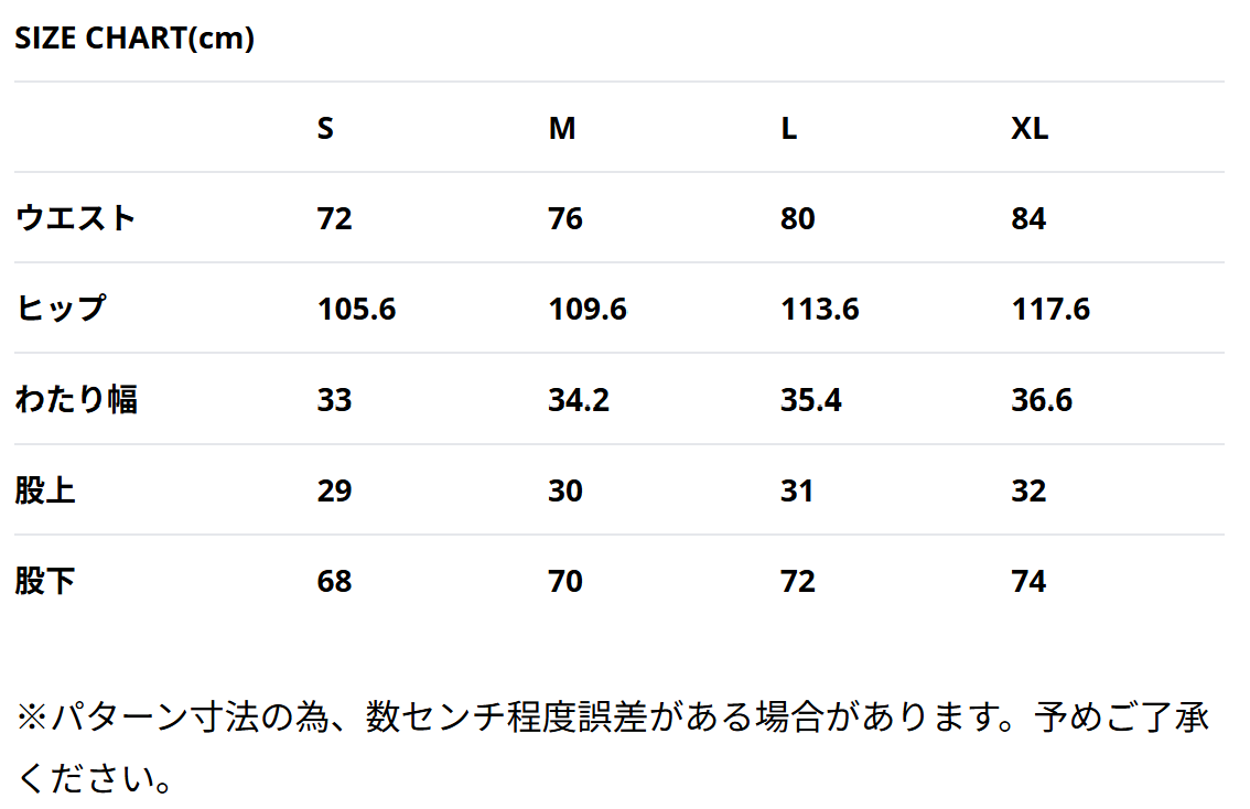| 実寸表 | |