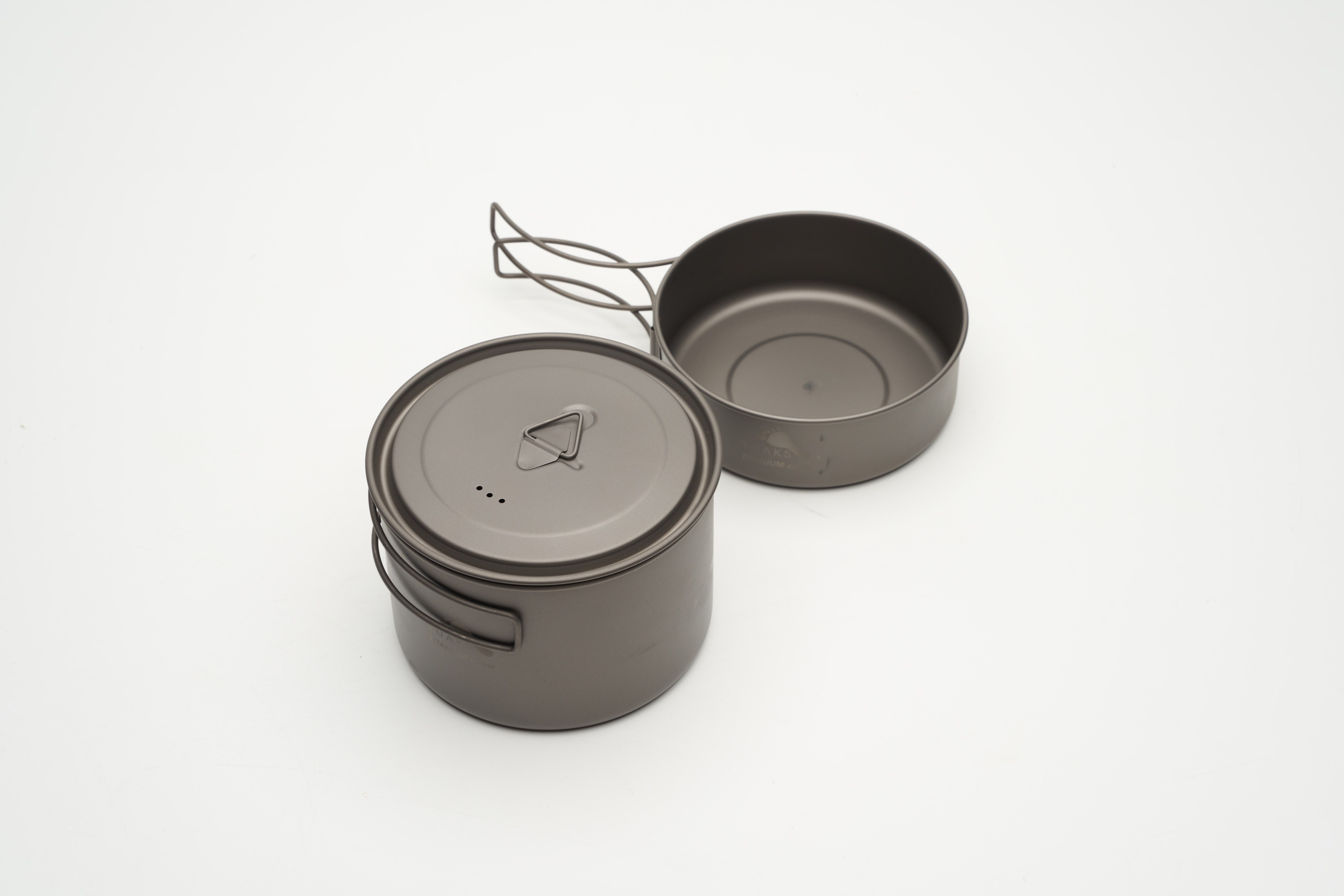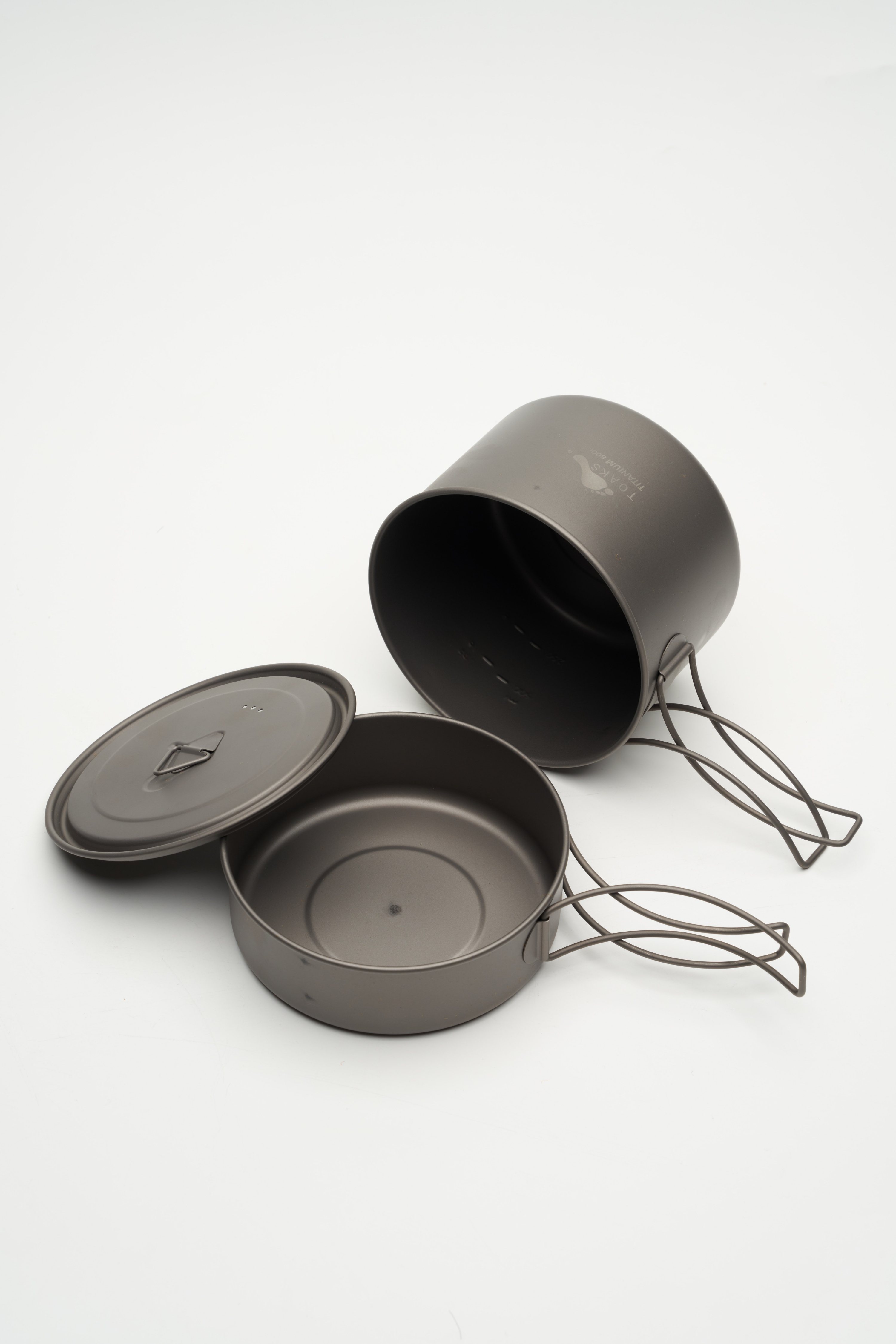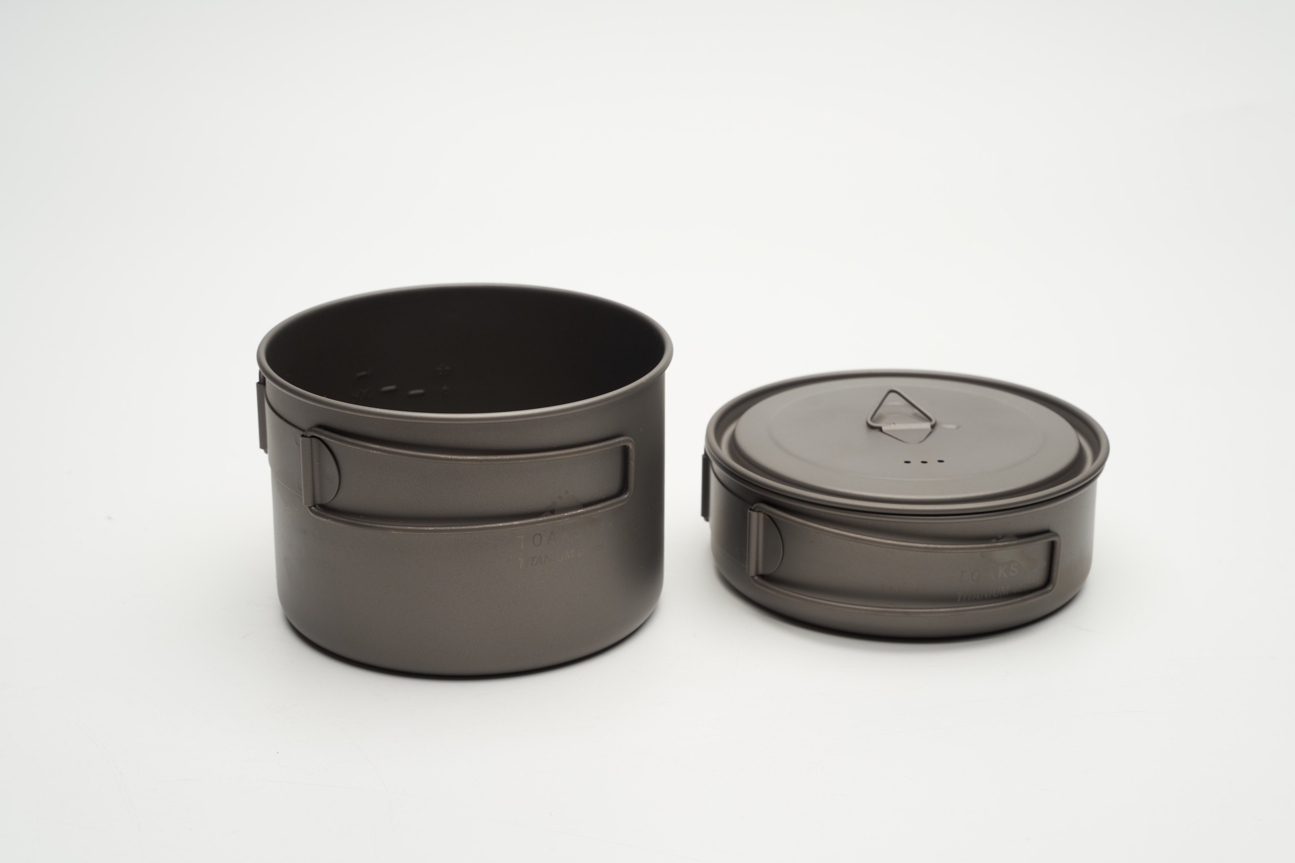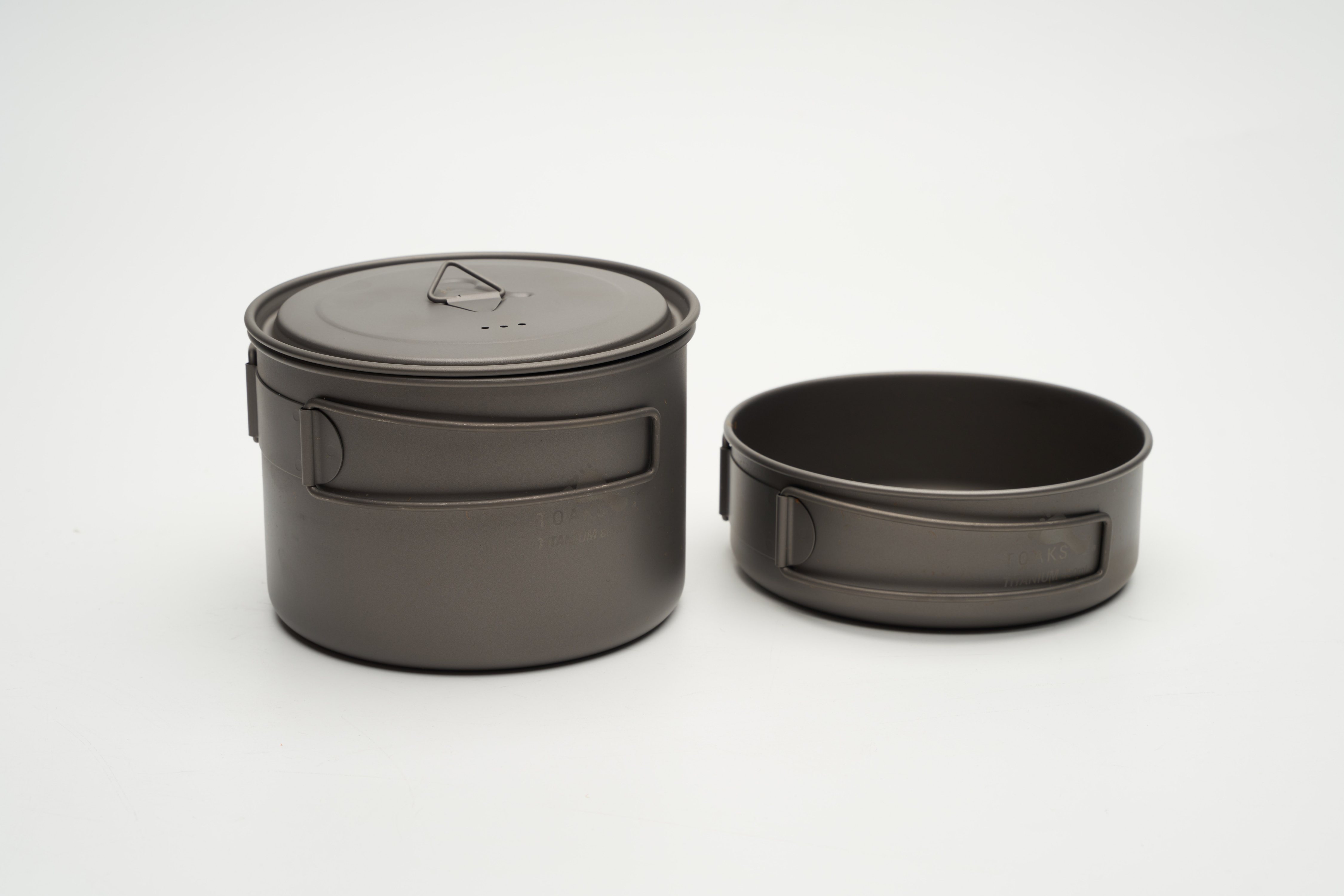 TOAKS チタン製クッカーセットは400mlチタンフライパン、800mlチタンポット、そして直径115/117mmのチタン蓋が含まれています。