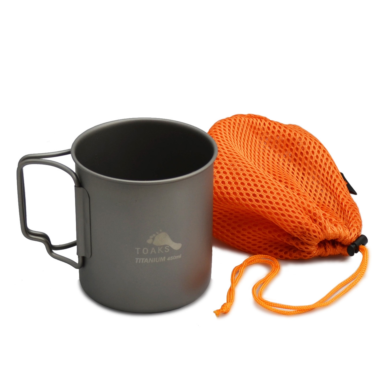 TOAKSの450mlチタン製キャンプカップは、お客様から非常に好評をいただいています。折りたたみハンドルと滑らかな質感が朝の飲み物とぴったり合い、収納しやすく、快適な使用感が抜群です。650ml以上のポットなら、どれもがこのカップを簡単に収納できます。