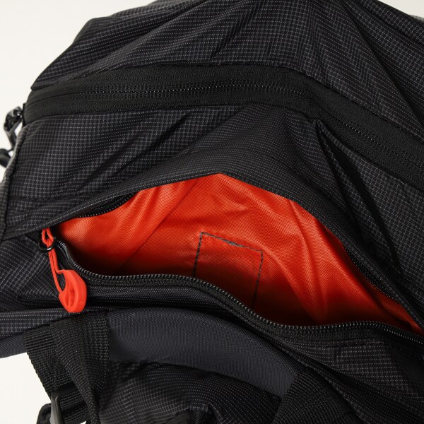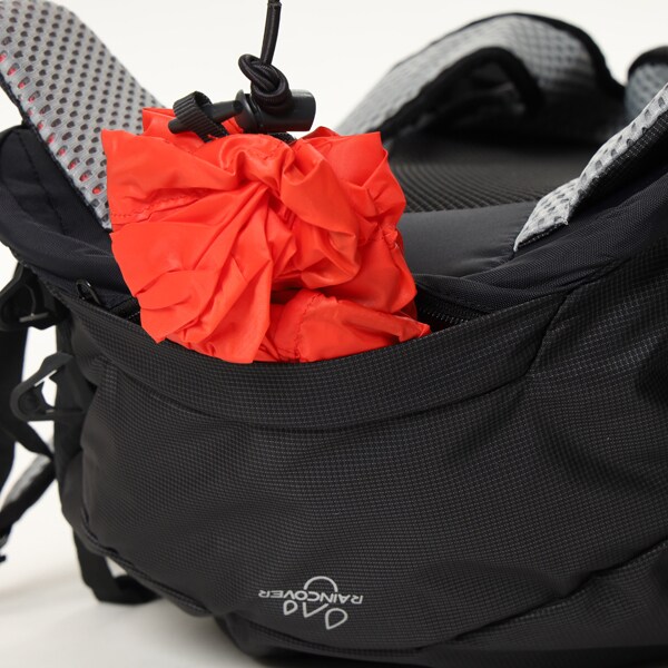 フロントストレッチメッシュポケット/トレッキングポールキャリア/ハイドレーション対応/キークリップ/レインカバー付き