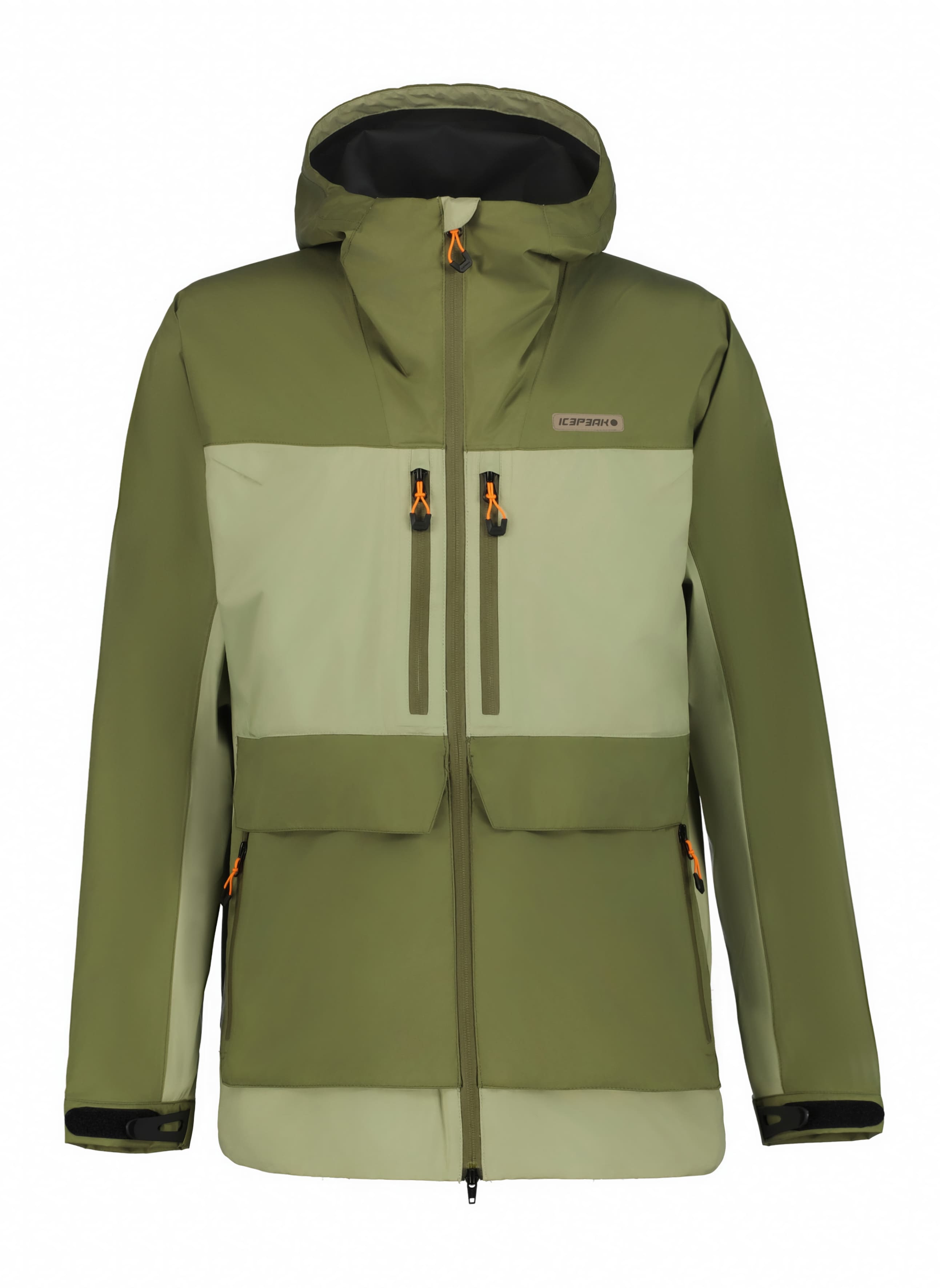 ICEPEAK独自の撥水加工素材を使用(耐水圧10000mm. 透湿性 10000g/m2/24h)裏地にはエンボス加工を施し快適な着心地を実現したシェルジャケットです